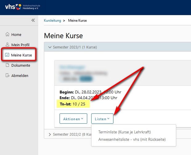 - Unter "Meine Kurse" finden Sie eine Übersicht über Ihre Kurse.