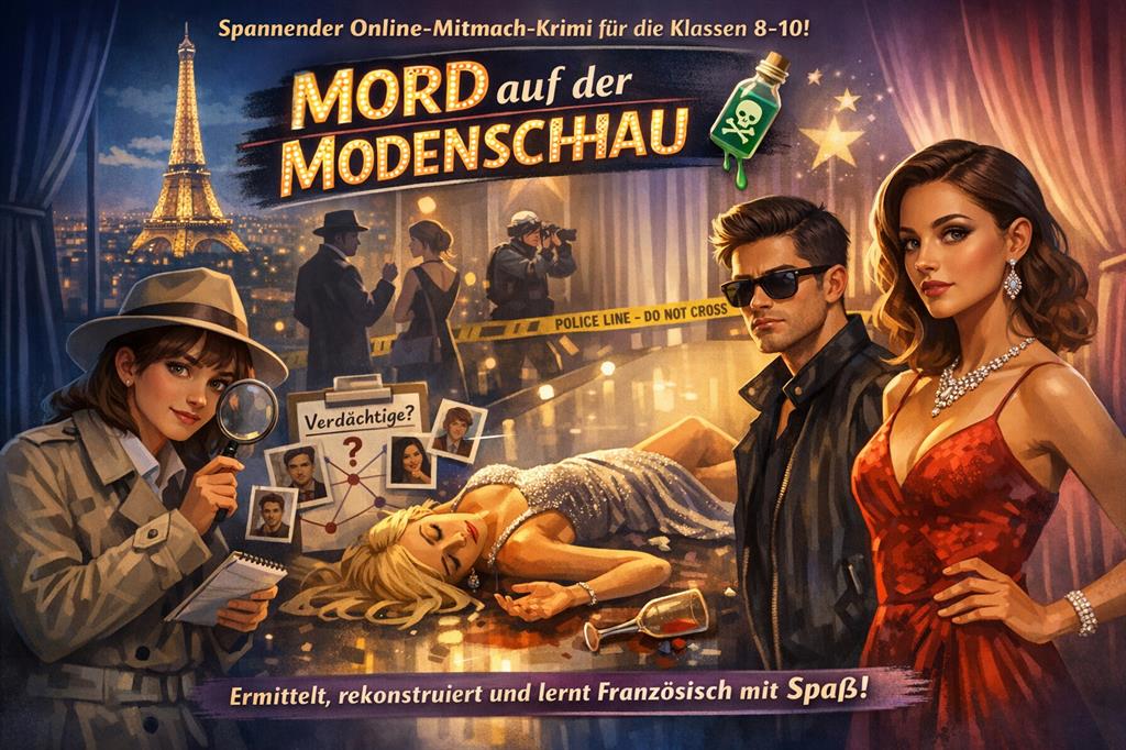 Der Kurs orientiert sich am Prinzip eines Krimi-Dinners und fördert auf spielerische Weise eure dialogische Sprechkompetenz und euer Hörverstehen. Ihr lernt, aus dem Gesagten Informationen herauszuhören, Motive zu erkennen und Hypothesen auf Französisch zu formulieren – und das alles mit viel Spaß und Spannung!